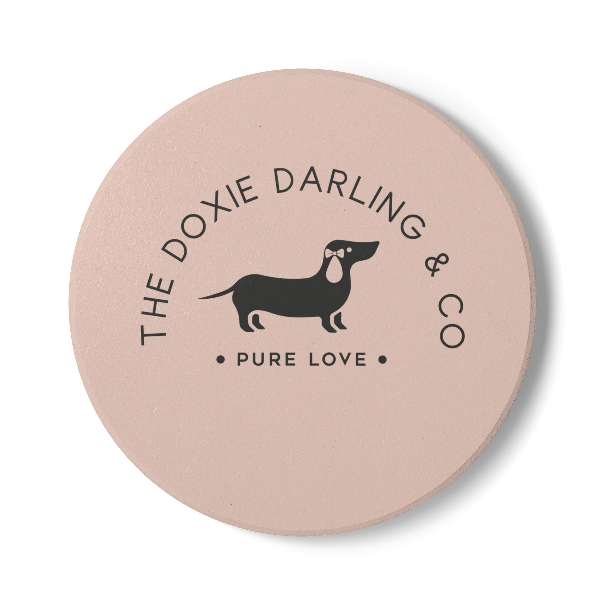 A simple, stylish ceramic coaster made for dog lovers who cherish quiet mornings and cozy evenings. The smooth white ceramic face shows a clean, minimalist dachshund silhouette and subtle text that reads like a small, private emblem. Underneath, a cork backing keeps the coaster steady on wood, tile, or metal surfaces — no slipping, no sliding, just calm. It handles hot coffee and cold iced drinks with equal ease and wipes clean in seconds. Slip one onto a nightstand, side table, or office desk to add a small, personal touch that speaks of slow sips, warm laps, and loyal companions.