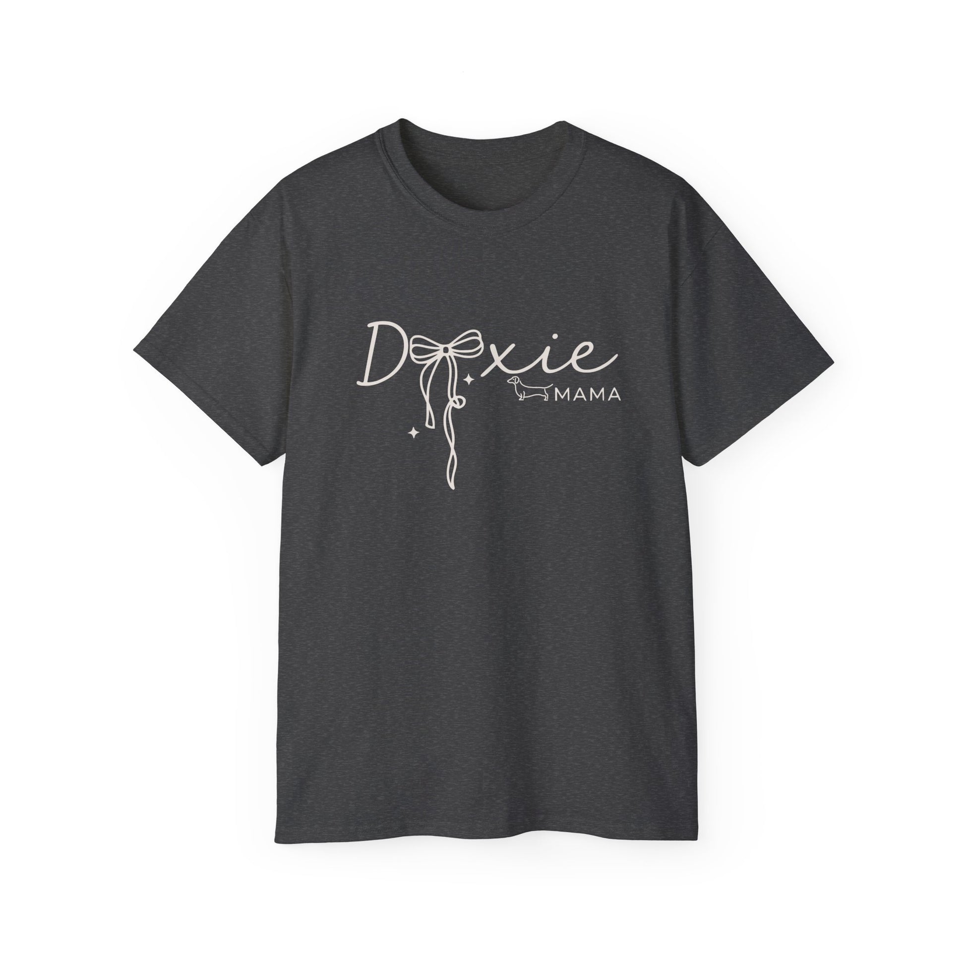 Light, lived-in, and quietly confident — this tee reads like a handwritten note from someone who loves their dog more than small talk. The soft, slightly vintage fabric and heathered specks give the shirt a relaxed, homey texture that pairs with denim, leggings, or a worn-in cardigan. The chest script and bow illustration say “Doxie Mama” with gentle charm, the kind of shorthand that sparks smiles on morning walks, at the vet, or curled up by a window with a dachshund at your feet. Breathable midweight cotton and a roomy cut make it easy to move, cuddle, and keep pace with life’s little adventures.